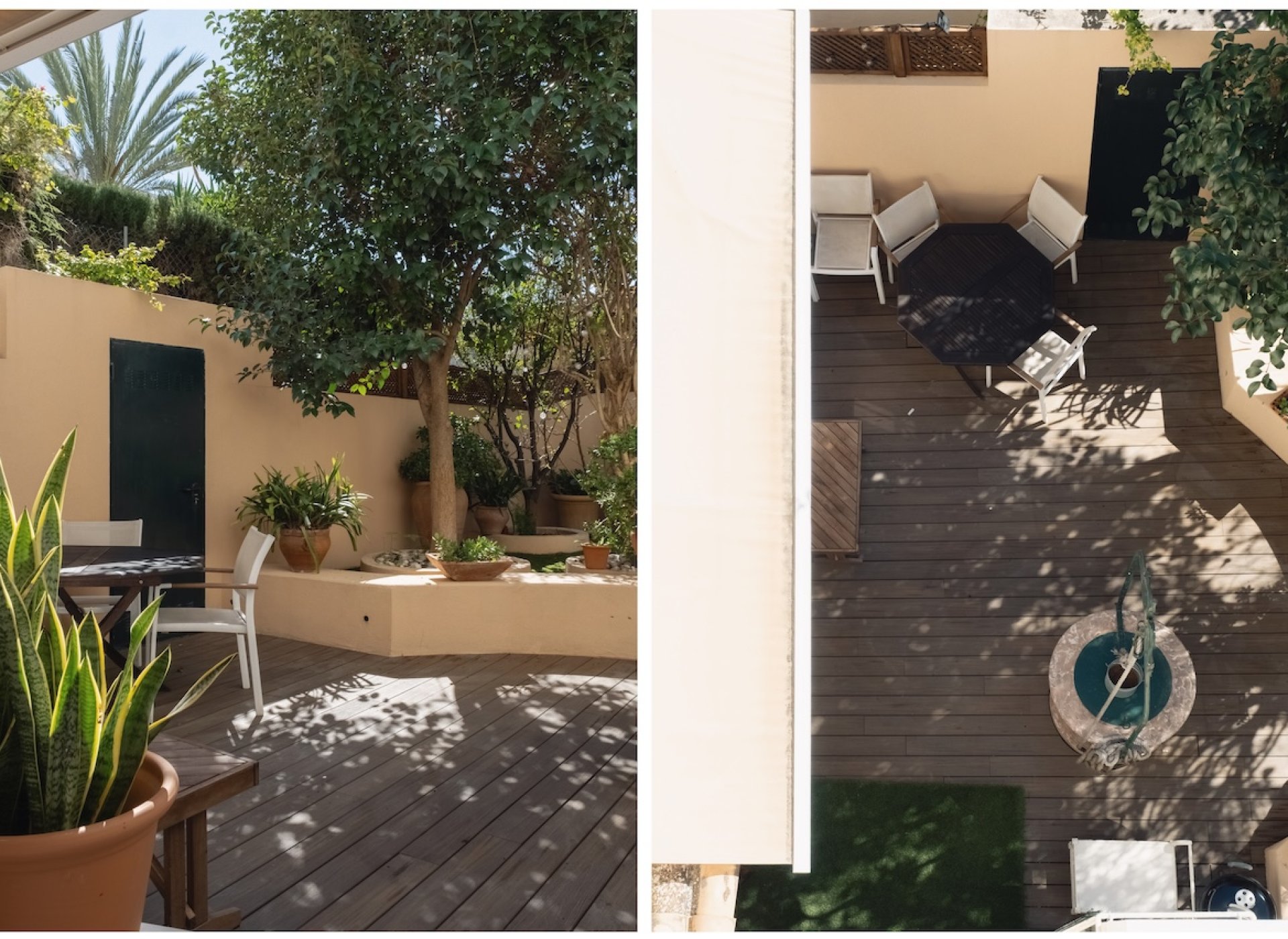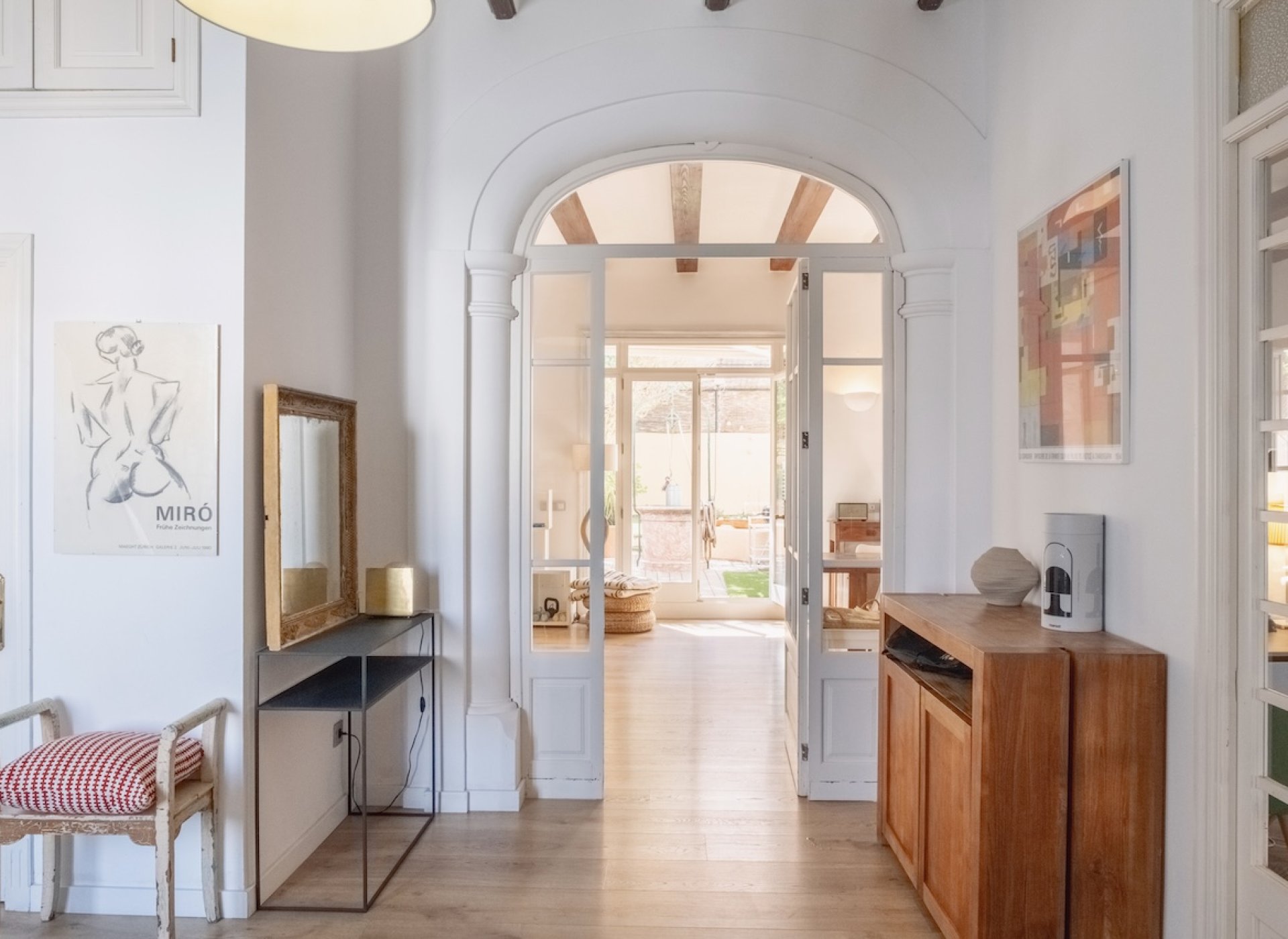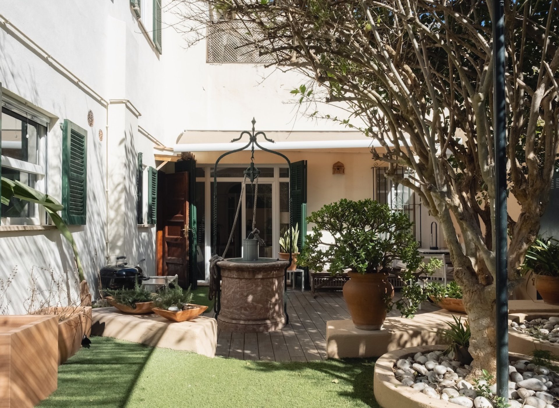 The property welcomes you through a spacious entrance framed by a characterful door, setting the tone for the warmth and authenticity found throughout the home. From here, you step into the bright, open living area on the ground floor, where generous natural light enhances the inviting atmosphere. A separate kitchen enjoys direct access to the terrace and garden, creating a seamless connection between indoor and outdoor living — ideal for relaxed gatherings and long evenings in the Mediterranean climate. This level also features a versatile room currently used as an office, a guest toilet, and direct patio access to the independent guest house. In addition to the patio entrance, the guest house benefits from its own separate street entrance, ensuring complete privacy and flexibility for visitors or rental use.