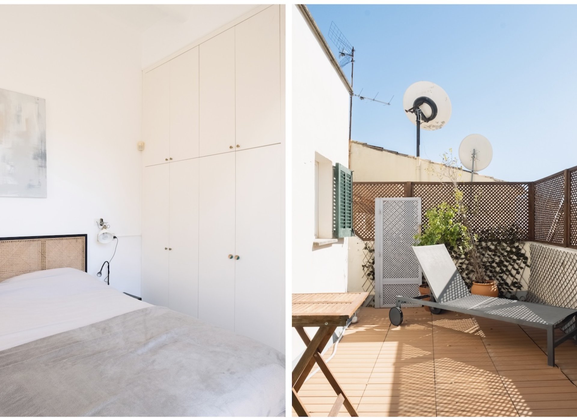 Upstairs, reached via a statement staircase, the home offers three bedrooms and two bathrooms. The main bedroom is en-suite and enjoys its own completely private terrace, perfect for sunbathing in total tranquillity. From here, you can access a rooftop terrace with excellent potential to be transformed into a stylish chill-out or entertainment area, currently awaiting its full vision.